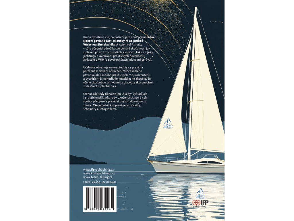 Aby se zájemce o plavbu na českých vnitřních vodách stal vůdcem malého plavidla, musí složit zkoušku. Aby se takový adept stal dobrým vůdcem malého plavidla, musí vstřebat i spoustu informací, které v suchých zněních předpisů nejsou. A proto je tady tato kniha. Najdete v ní nejen znění pravidel, ale také jejich vysvětlení a k tomu komentáře a příběhy vycházejících z osobní zkušenosti autorky, které vše doprovází mnoha obrázky, schématy a fotografiemi.